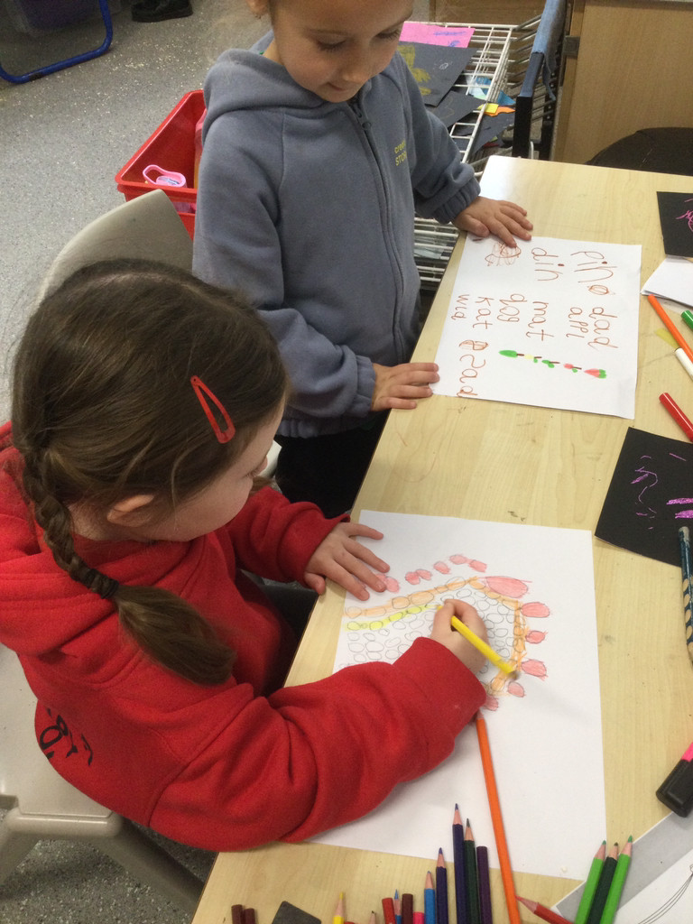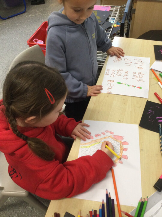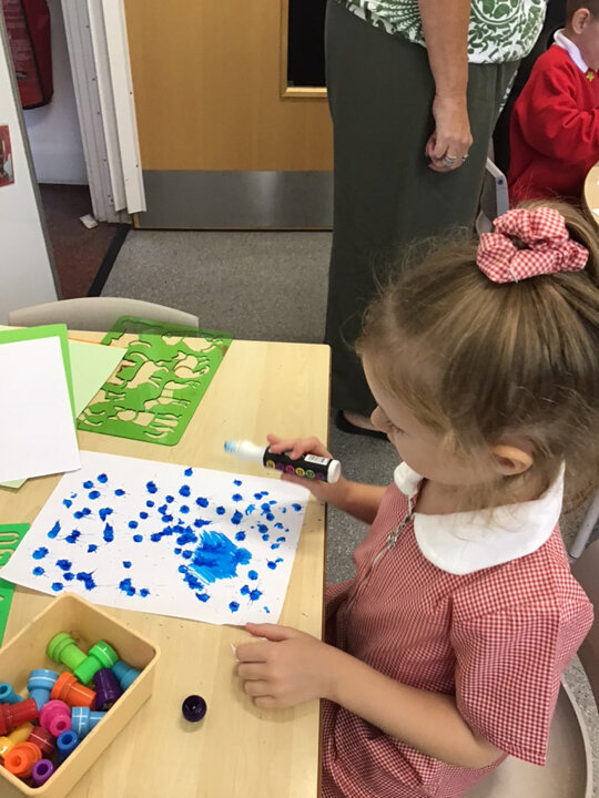 Children begin their journey towards writing, not by producing letters and words, but by simply making marks. Also to support with our fine motor development we regularly exercise our fingers and build up control with our hands by taking part in daily ‘Dough Disco’ activities.