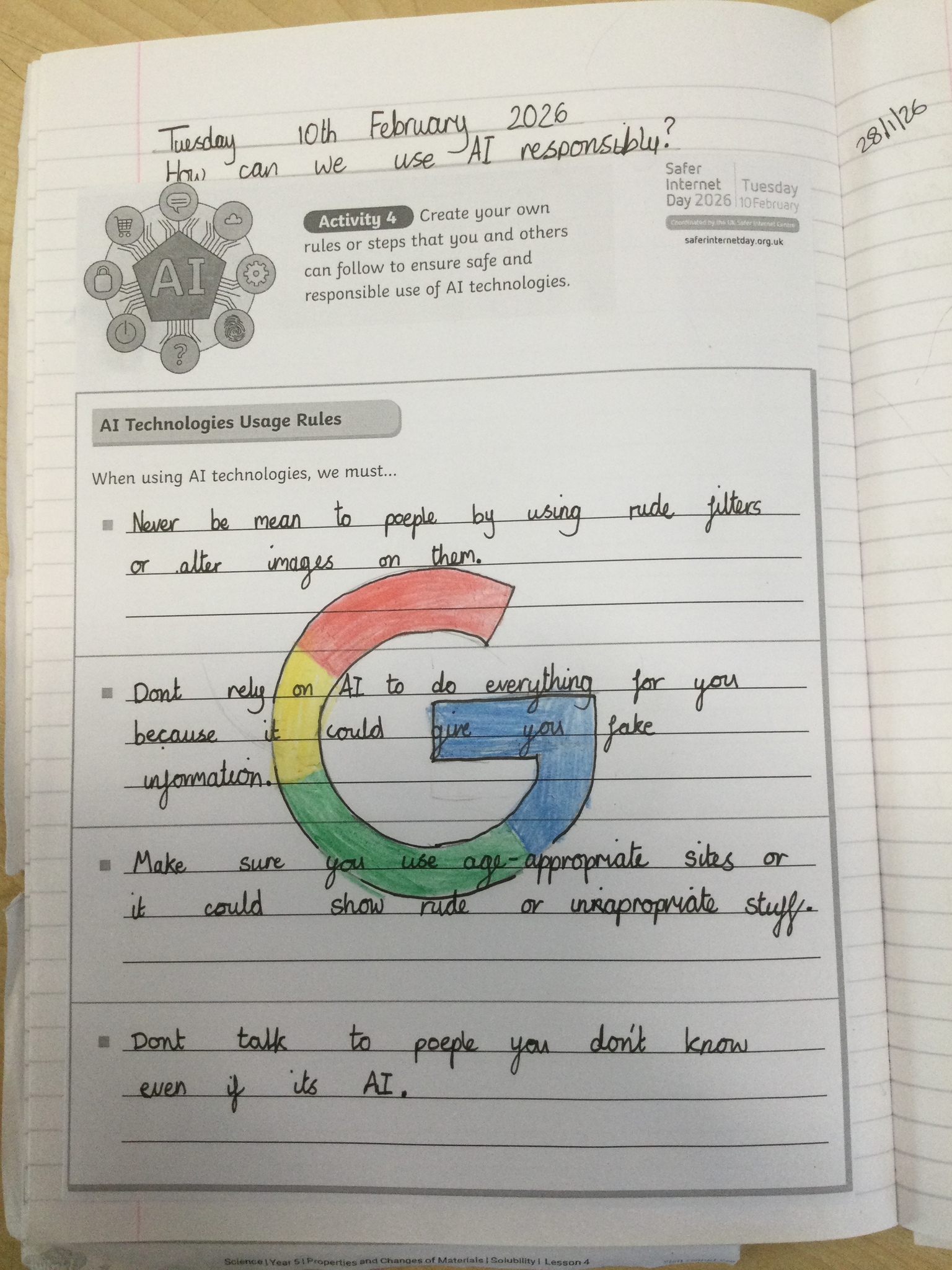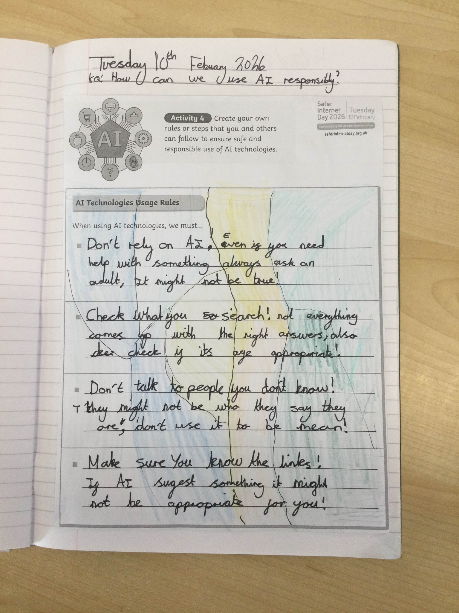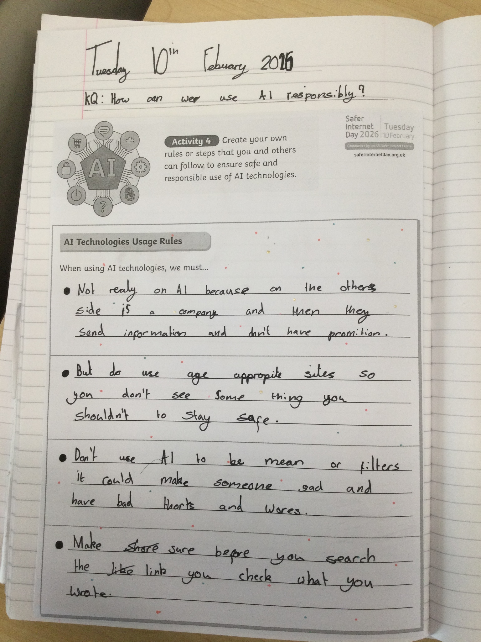 Year 5 have had an excellent Safer Internet Day looking at how to be responsible when using AI. We debated whether AI should be used in school to create resources and answer questions, as well as how it can be used in the wider world.